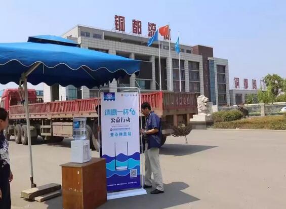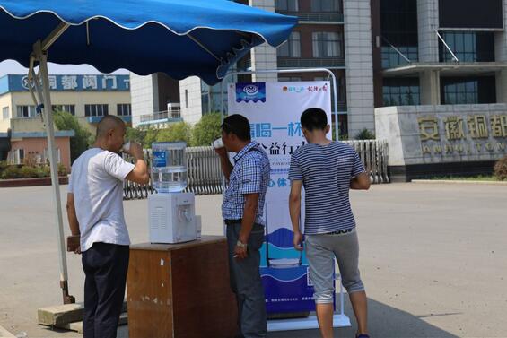 他們用汗水,方便了市民的生活、他們用汗水,洗去了城市的塵埃,因?yàn)橐獔?jiān)守崗位,甚至有時(shí)無(wú)法在口渴時(shí)喝一杯涼水,也無(wú)法在酷暑難耐時(shí)稍作休息。炎炎夏日,一杯清水對(duì)坐在辦公室的市民來(lái)說(shuō),是微不足道的,但是對(duì)高溫酷暑下的為戶(hù)外高溫作業(yè)人員來(lái)說(shuō),喝一杯清水在繁忙的一天中卻顯得如此奢侈。7月25日,共青團(tuán)銅陵市委、銅陵日?qǐng)?bào)社聯(lián)合發(fā)起"請(qǐng)喝一杯水"愛(ài)心公益活動(dòng)后,我公司立即響應(yīng)號(hào)召,在我公司大門(mén)口設(shè)立愛(ài)心崗?fù)?愛(ài)心休息站",為在烈日下工作的人們提供夏季的一絲涼意。