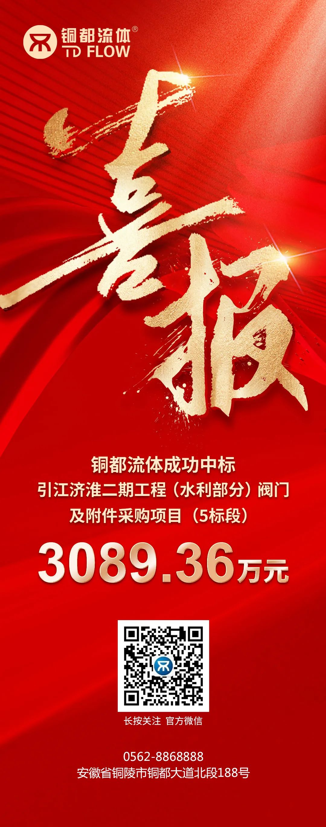 銅都流體成功中標引江濟淮二期工程(水利部分)閥門及附件采購項…
