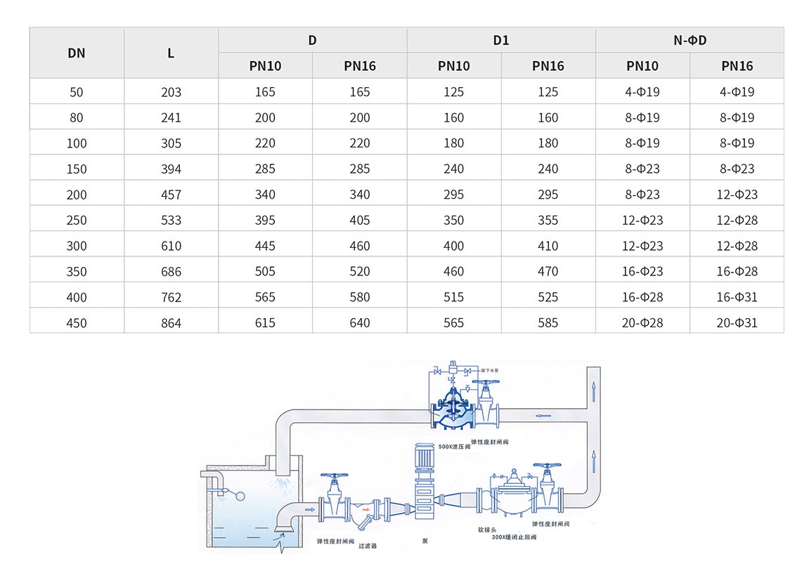 500X泄壓/持壓閥主要用于消防或其他供水系統(tǒng)中,以防止系統(tǒng)超壓或維持消防供水系統(tǒng)的壓力。消防泵關(guān)閉后還可以減小水錘的沖擊。也用于大型供水系統(tǒng)的水錘消除裝置,并且閥門控制系統(tǒng)的進(jìn)口處裝有一個(gè)自清潔濾網(wǎng),利用流體特性,使比重較大、直徑較大的懸浮顆粒不會(huì)進(jìn)入控制系統(tǒng),確保系統(tǒng)循環(huán)暢通無阻,使閥門能安全可靠地運(yùn)行。系統(tǒng)動(dòng)作平穩(wěn)、強(qiáng)度高、使用壽命長(zhǎng)適用于DN600口徑以下的管道。