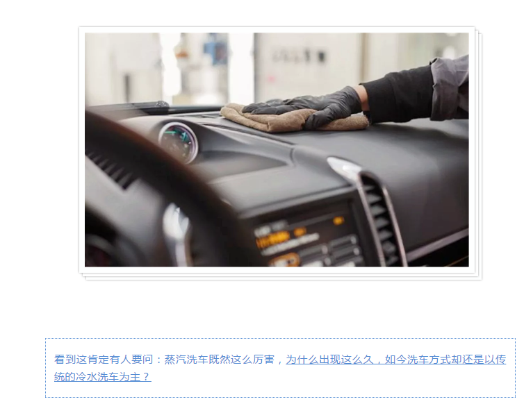 蒸汽洗車在清潔汽車內部的時候很便捷,要注意的是清洗內飾和清洗外表時所用的蒸汽干濕度不同,汽車外表濕度大小影響不大,用什么樣的濕度都可以,內飾可不行。