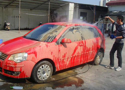 (2)高壓水槍洗車:高壓水槍的水壓十分的大,對車漆的損傷非常的大,并且這種洗車方式也非常的浪費水資源,在我們的很多地方都明令禁止使用高壓水槍開設洗車店。